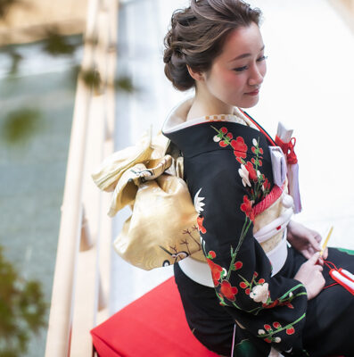 高砂の背景に見えるのは、宮崎神宮の深い緑。 正真正銘の「鎮守の杜」がおふたりの門出を見守っています。 白を基調にしたデザインは、自由にアレンジしていただきたいから。 窓から差しこむ自然光が皆さまを優しく包み込みます。